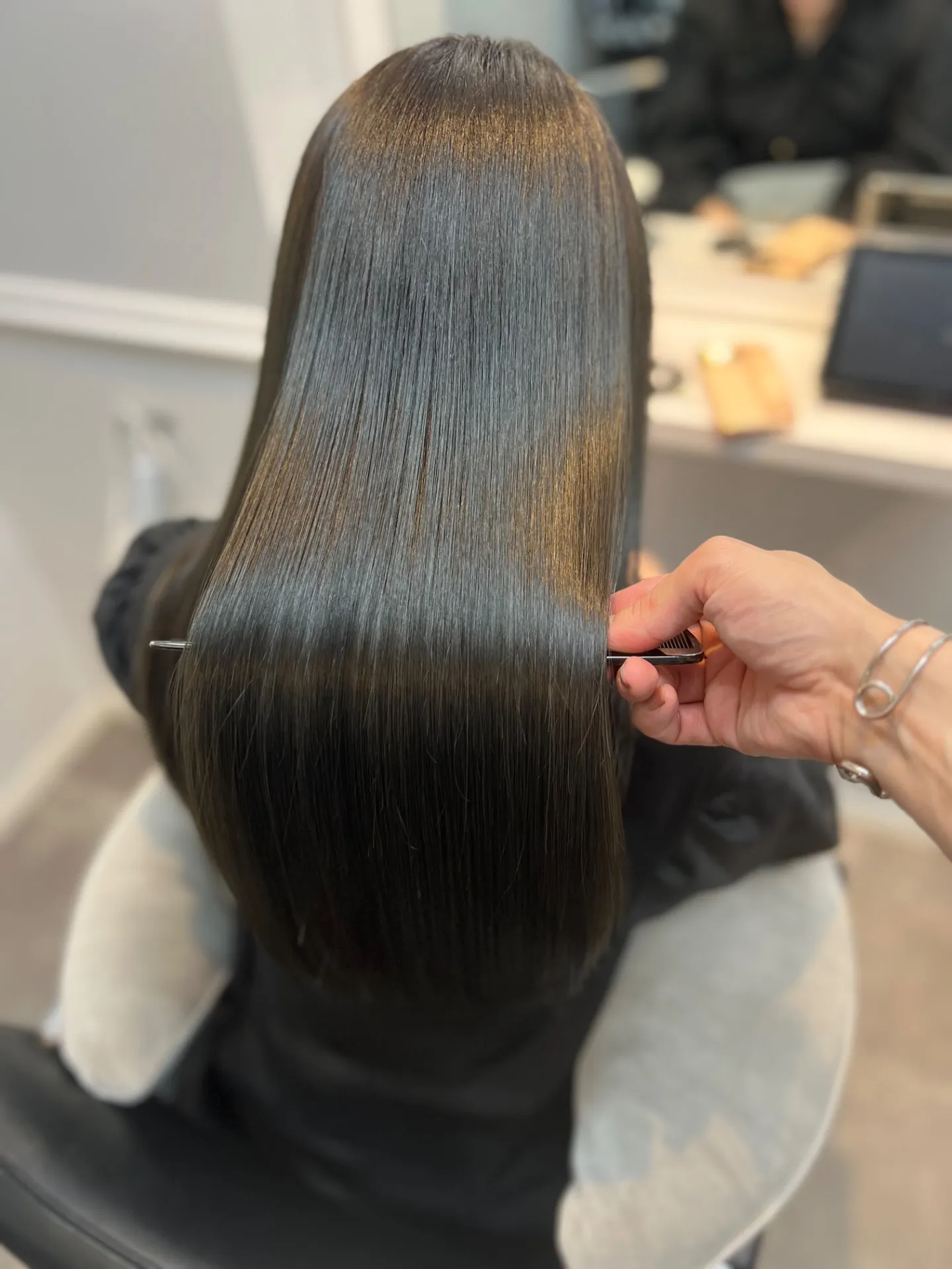施術後の髪のしなやかさと指通りの良さ
