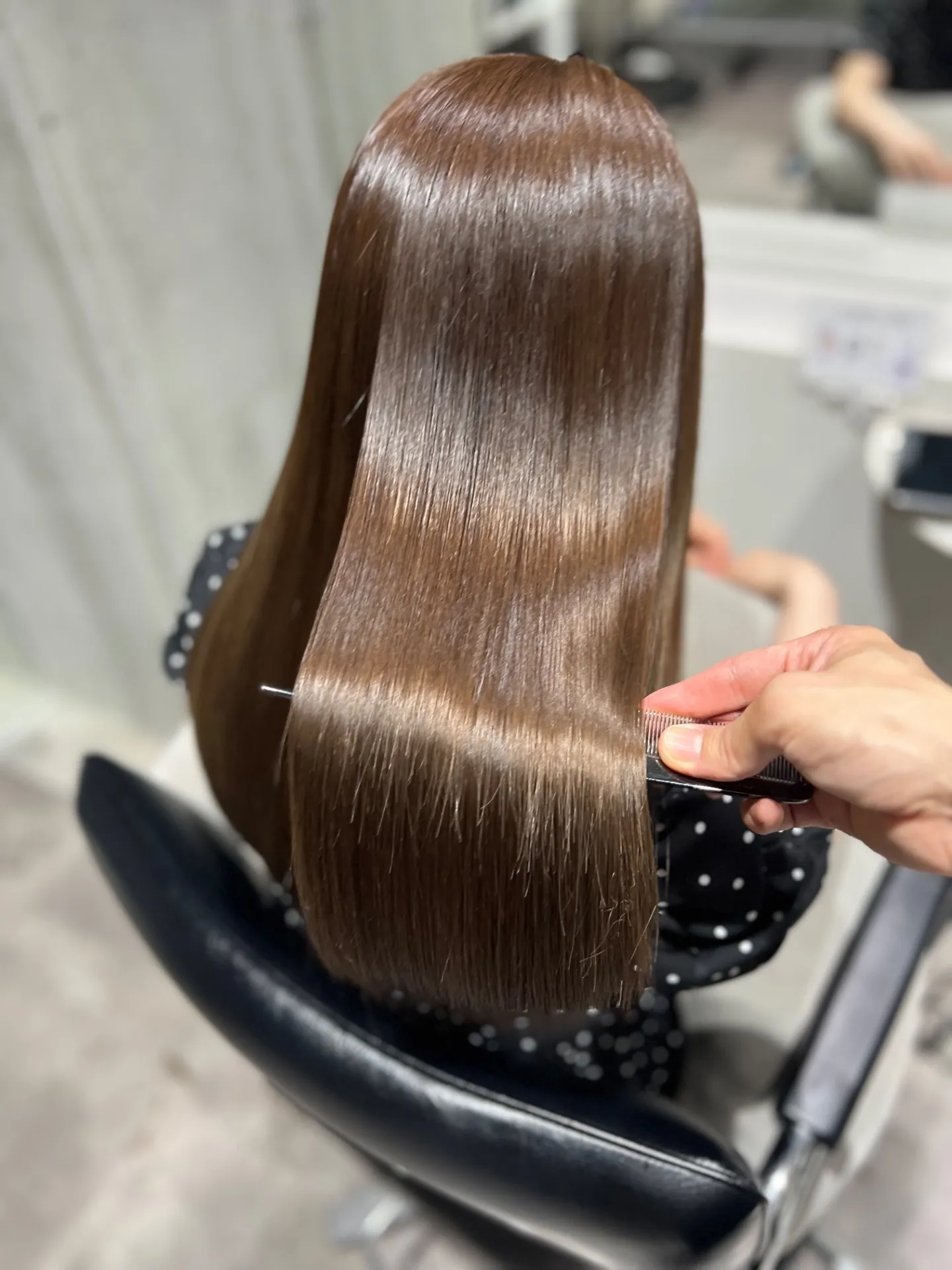 銀座のサロンでは、ダメージレベルに応じて施術工程を細かく調整するため、カラーや縮毛矯正後の髪も安心して任せられます。例えば、繰り返しのカラーで傷んだ髪も、メテオ成分による内部補修で柔らかくまとまりやすい髪質へと導くことができます。施術後は、手触りの変化やツヤ感アップを即実感できる点も好評です。